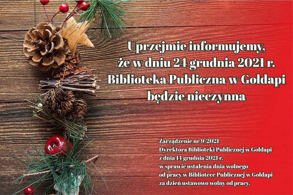 Autor:info 15 grudnia 2021 Czytelnia,Dział gromadzenia i opracowania zbiorów,Dział zbiorów specjalnych,Filia w Grabowie,Izba Regionalna,Pracownia komputerowa,Wypożyczalnia dla dorosłych,Wypożyczalnia dla dzieci