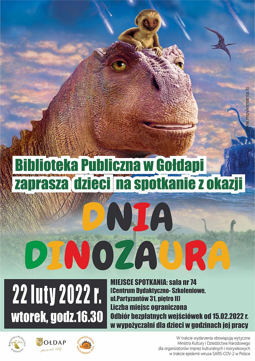 Biblioteka Publiczna w Gołdapi zaprasza dzieci na spotkanie z okazji „Dnia dinozaura”, które odbędzie się 22.02.2022 r o godzinie 16:30 w sali nr 74 ( Centrum Dydaktyczno- Szkoleniowe , II piętro).