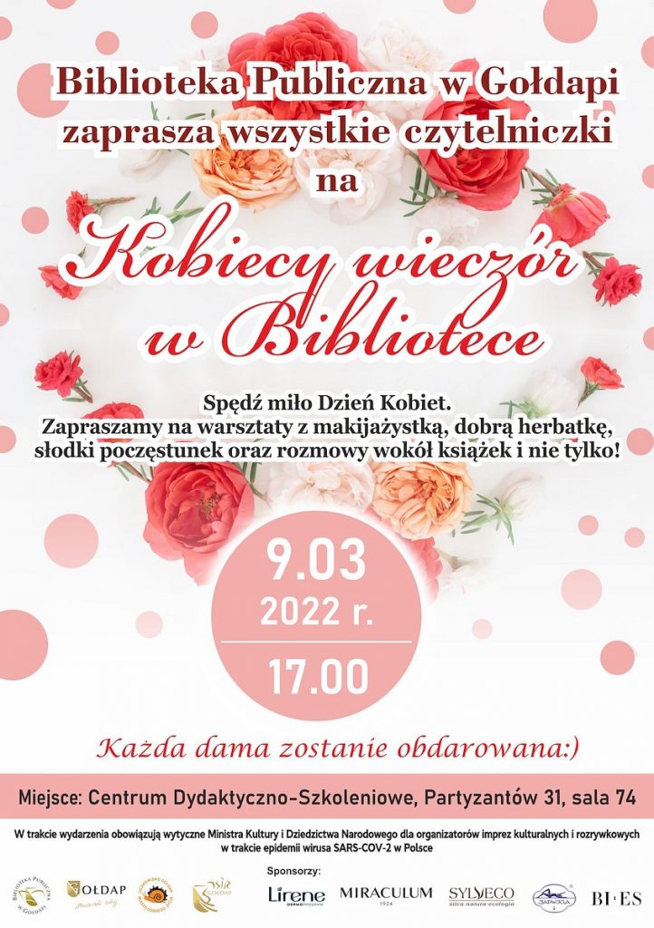 Podaruj sobie chwilę relaksu – z okazji Dnia Kobiet w dniu 9 marca 2022r. Biblioteka Publiczna w Gołdapi zaprasza panie na warsztaty z makijażystką, która opowie o tym, jak dbać o cerę. W czasie spotkania odbędzie się również degustacja herbat z całego świata oraz coś słodkiego.