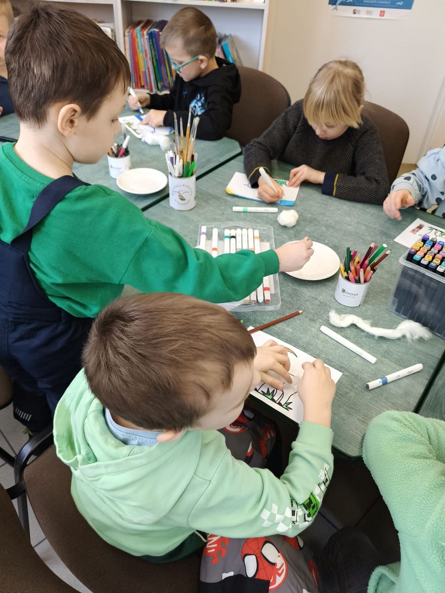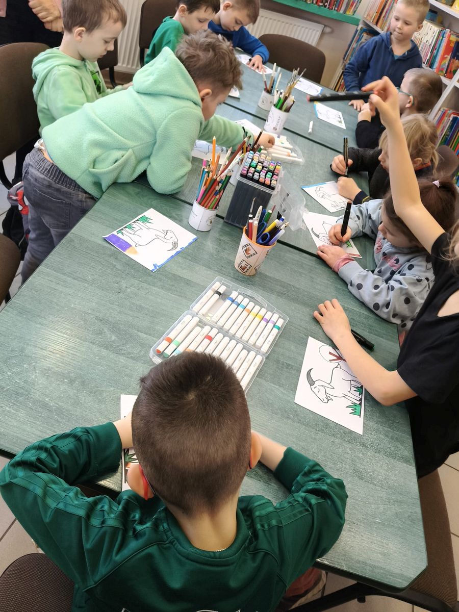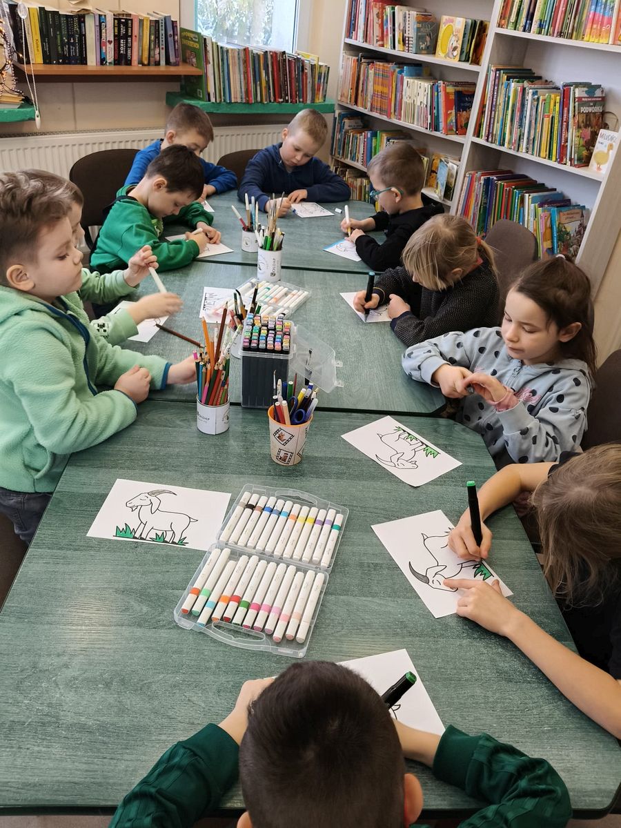Na zakończenie uczniowie wzięli udział w zajęciach plastycznych. Wyklejali postać koziołka używając waty i innych materiałów plastycznych. Praca twórcza sprawiła dzieciom wiele radości i była miłym podsumowaniem spotkania.