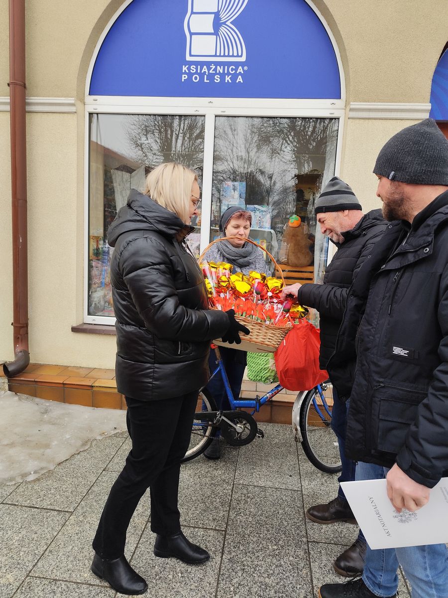 Pracownicy biblioteki obdarowywali mieszkańców drobnymi upominkami, zapraszali do wspólnych zdjęć oraz zachęcali do odwiedzania biblioteki. Nie brakowało ciepłych rozmów, spontanicznych reakcji i miłych gestów, które pokazały, jak ważne są takie momenty bliskości w lokalnej społeczności.