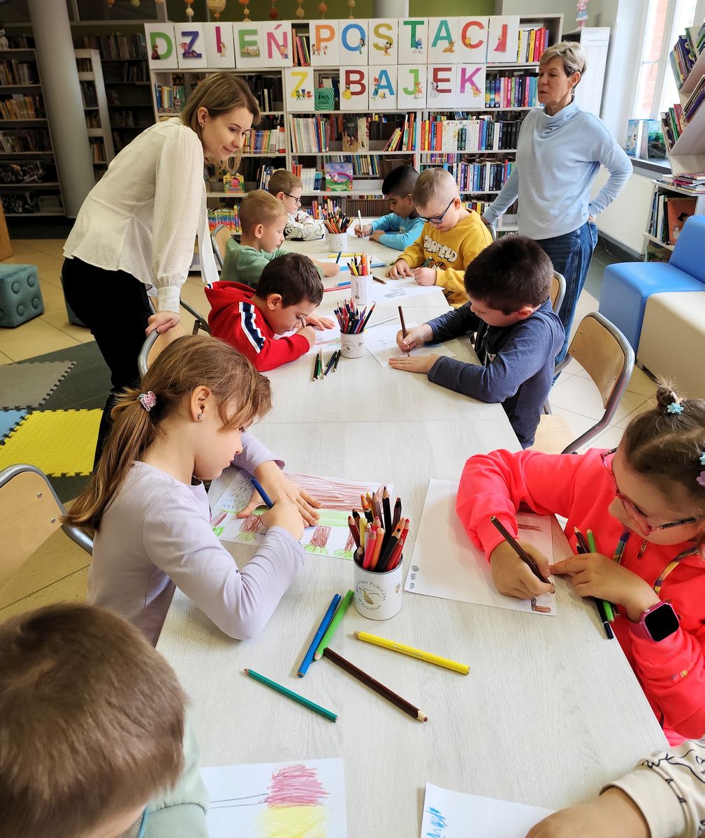 Zakończył się listopad – miesiąc, który w naszej bibliotece upłynął w bajkowej, literackiej i kreatywnej atmosferze. Odwiedziły nas przedszkolaki z Zespołu Placówek Edukacyjno-Wychowawczych w Gołdapi i Niepublicznego żłobka i przedszkola „Radosne Skrzaty” w Gołdapi, a także uczniowie Szkoły Podstawowej nr 5 im. Noblistów Polskich w Gołdapi i Szkoły Podstawowej nr 3 im. Tadeusza Kościuszki w Gołdapi , by wspólnie odkrywać magiczny świat opowieści. Czytaliśmy na dywanie, poznawaliśmy bajki z różnych zakątków świata i tworzyliśmy własne historie podczas warsztatów „Nowa przygoda bajkowych bohaterów”. Nie zabrakło również rodzinnego warsztatu bajkowego podczas którego mali i duzi uczestnicy mogli przenieść się do świata ulubionych postaci, wymyślać ich nowe przygody i przekonać się, że każda książka skrywa nieograniczony świat wyobraźni. Listopad minął nam więc niezwykle twórczo, radośnie i magicznie – w rytmie bajek, które łączą, inspirują i zachęcają do wspólnego czytania.