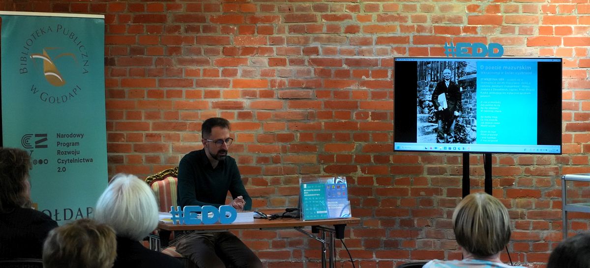 Biblioteka Publiczna w Gołdapi zaprosiła w samo południe do Izby Regionalnej „Muzeum Ziemi Gołdapskiej im. M.M. Ratasiewicza” gdzie odbył się wernisaż wystawy „Mazurscy Poeci” udostępnionej przez Muzeum Michała Kajki w Ogródku. Wydarzeniu towarzyszyła również prelekcja Michała Misztala – kierownika tej placówki – zatytułowana „Michał Kajka i inni mazurscy architekci słowa”, która wprowadziła uczestników w świat literatury mazurskiej. Spotkanie było okazją do bliższego poznania życia i dorobku Michała Kajki – najwybitniejszego mazurskiego poety, z zawodu cieśli, lecz przede wszystkim „architekta słowa”, którego spuścizna literacka pozostaje trwałym elementem dziedzictwa kulturowego Mazur. Uczestnicy mogli także wysłuchać opowieści o innych twórcach, którzy swoją działalnością literacką współtworzyli tożsamość regionu. Ważnym wątkiem była również refleksja nad językiem mazurskim – jego historią, znaczeniem i miejscem we współczesnej pamięci kulturowej. Wydarzenie zostało zorganizowane w ramach Europejskich Dni Dziedzictwa 2025 pod hasłem „W stronę architektury. Młode dziedzictwo”. Tegoroczna edycja podkreśla, że dziedzictwo to nie tylko materialne budowle czy zabytki, lecz także niematerialne wartości – takie jak literatura, język i tradycja – które wspólnie budują fundament naszej kulturowej tożsamości.