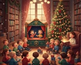 Dzieci z przedszkola odwiedzą bibliotekę, by obejrzeć teatrzyk, pobawić się klockami i posłuchać świątecznej bajki pełnej magii i uśmiechu.