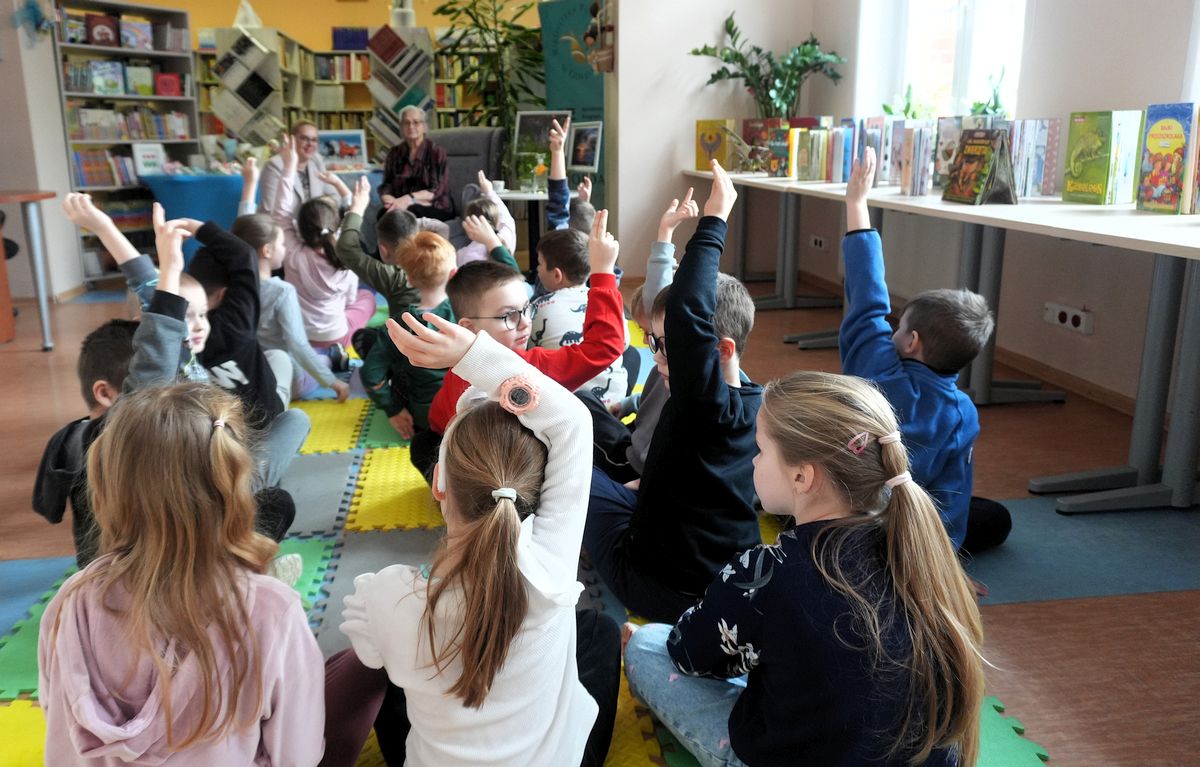 W ramach akcji czytelniczej „Cała Polska czyta dzieciom” odbyło się spotkanie, w którym uczestniczyli uczniowie z klasy pierwszej  Szkoły Podstawowej nr 3 im. Tadeusza Kościuszki w Gołdap. Dzieci przywitała Agnieszka Dziobkowska-dyrektor biblioteki, podkreślając znaczenie codziennego czytania oraz rolę książki w rozwijaniu wyobraźni i wrażliwości najmłodszych. Podczas wydarzenia fragment bajki z publikacji „Więcej przygód w Dolinie Muminków” inspirowanej opowiadaniami Tove Jansson, został odczytany przez panią Annę Andrzejewską – aktywną czytelniczkę Biblioteki Publicznej w Gołdapi, klubowiczkę Klubu Włóczkowego Rękodzieła, rękodzielniczkę oraz słuchaczkę Uniwersytetu Trzeciego Wieku.