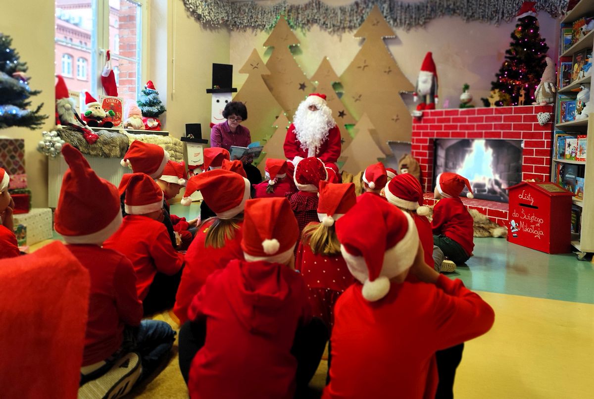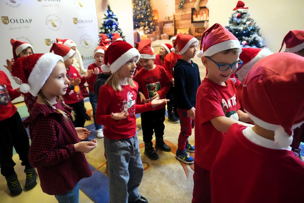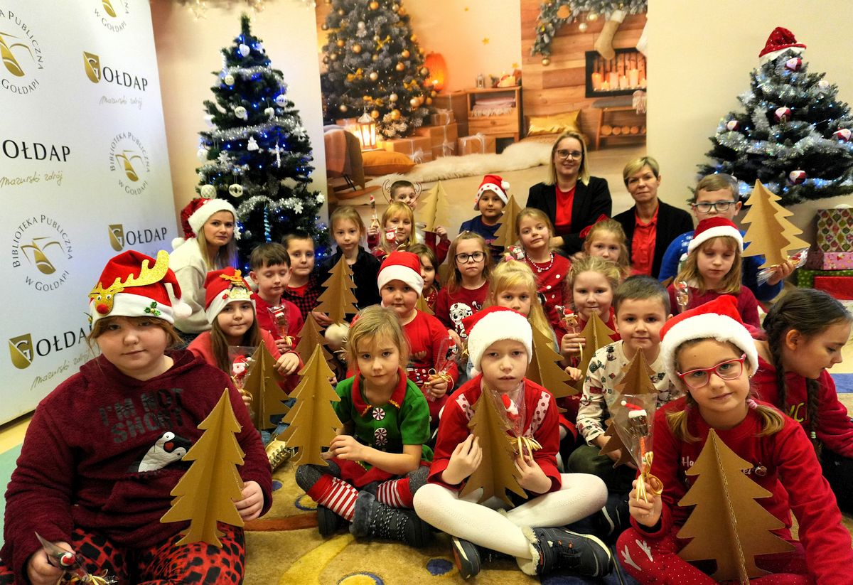 W Bibliotece Publicznej w Gołdapi odbyło się „Spotkanie z Mikołajem”, w którym udział wzięły dzieci ze Szkoły Podstawowej nr 3 im. Tadeusza Kościuszki w Gołdapi oraz Szkoły Podstawowej nr 5 im. Noblistów Polskich w Gołdapi. Już od pierwszych chwil można było poczuć wyjątkowy nastrój nadchodzących mikołajek – dzięki specjalnie przygotowanej na ten dzień świątecznej komnacie stworzonej przez pracowników biblioteki. Wypełniona dekoracjami i zimowymi akcentami przestrzeń wprowadziła wszystkich w ciepły, radosny klimat. Uczestników wydarzenia powitała pani Agnieszka Dziobkowska Dyrektor Biblioteki, podkreślając znaczenie wspólnego czytania i spotkań wokół literatury. Następnie dzieci wysłuchały świątecznych opowieści, które odczytali wyjątkowi goście Konrad Kazaniecki Burmistrz Gołdapi oraz pani Agnieszka Tomaszewska-Skoczeń nauczycielka ze Szkoły Podstawowej nr 5 im. Noblistów Polskich w Gołdapi. Ich interpretacje przeniosły najmłodszych w zimowy świat pełen dobroci, marzeń i świątecznego ciepła. Dzieci przygotowały również niespodziankę – wspólnie zaśpiewały mikołajowi świąteczne piosenki, które zostały nagrodzone szerokim uśmiechem i gromkimi brawami. Radość najmłodszych była najpiękniejszym dowodem na to, jak wyjątkowe było to spotkanie. W tym samym czasie świąteczny nastrój zawitał także do Filii w Grabowie, którą odwiedziły dzieci ze Szkoły Podstawowej im. Michała Kajki w Grabowie. Tam najmłodsi poznali opowieść z teatrzyku kamishibai przedstawiającą przypadkowe spotkanie Gwiazdora ze Świętym Mikołajem. Dzieci z ogromnym zainteresowaniem śledziły kolejne ilustracje papierowego teatru, chętnie odpowiadały na pytania i dzieliły się własnymi mikołajkowymi doświadczeniami.