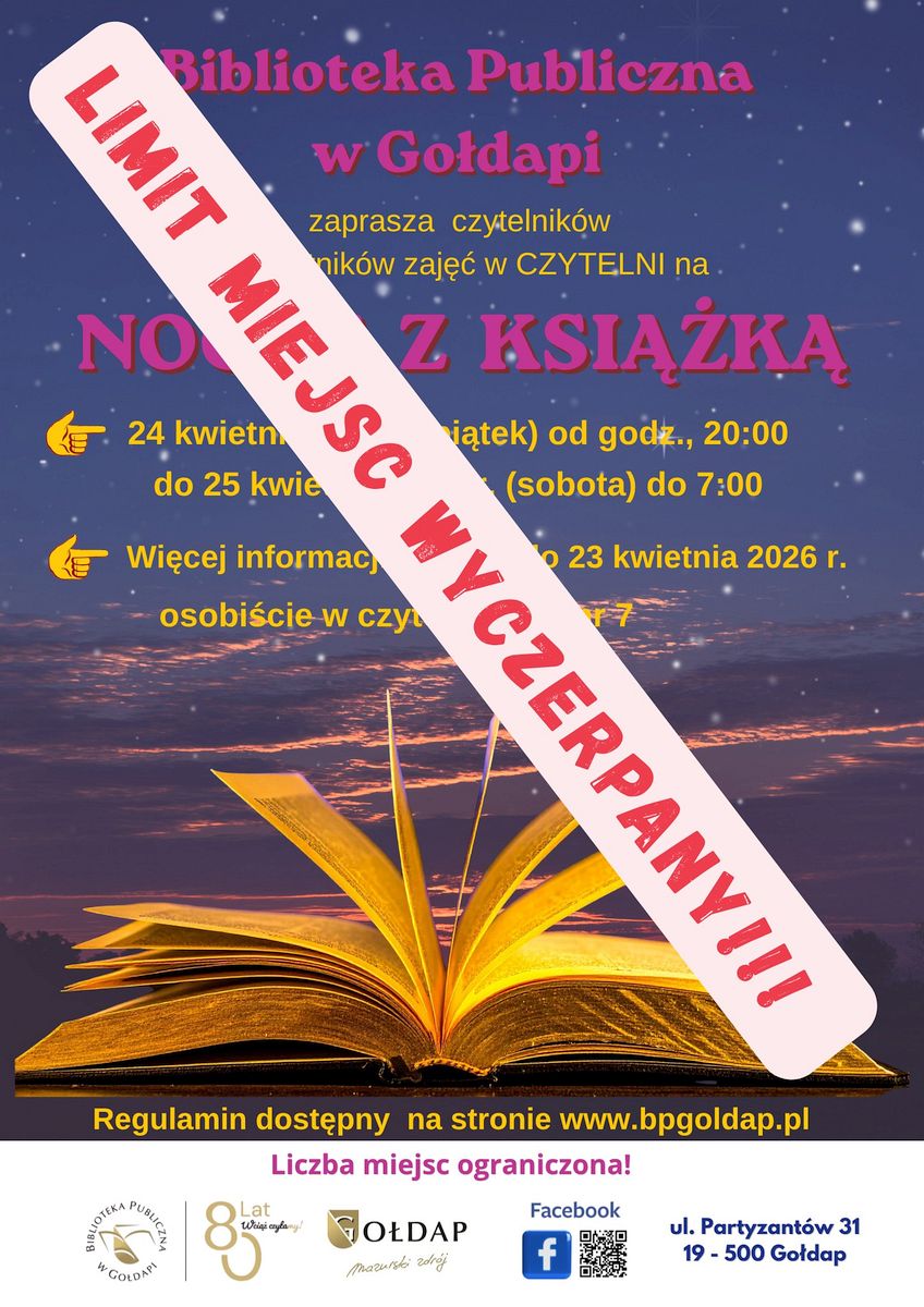 Drodzy nasi! Informujemy, że liczba miejsc na nockę w bibliotece została wyczerpana.
