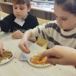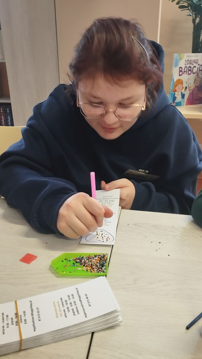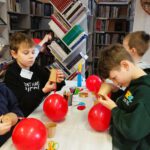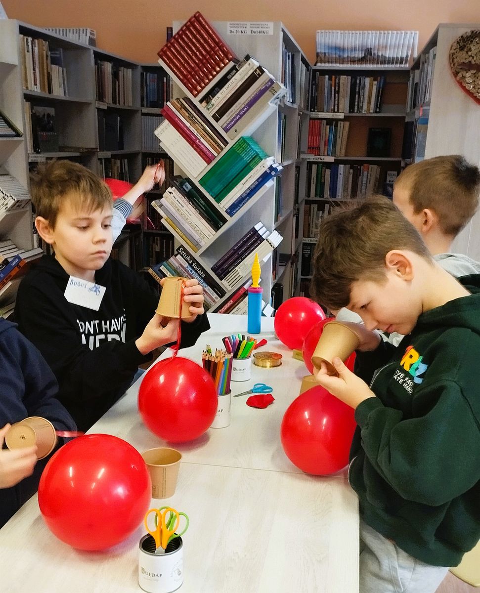 W tym samym czasie podczas „Ferii w bibliotece” dzieci brały udział w twórczych aktywnościach – wykonywały kolorowe bransoletki z gumek, przygotowywały zakładki do książek ozdabiane błyszczącymi brylancikami oraz programowały i bawiły się robotami Photon. Nie zabrakło także działań przyrodniczo-plastycznych – powstały witraże dla ptaków.