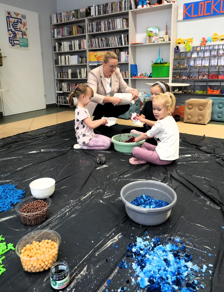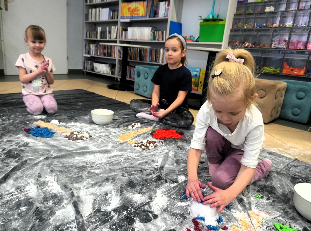 Za nami ostatni dzień pełen kreatywności i wspólnej zabawy – zarówno podczas „Zimowych poranków” jak i „Ferii w bibliotece” spędzanych w bibliotece. Każde spotkanie przynosiło dzieciom nowe doświadczenia i mnóstwo uśmiechu. Podczas  „Zimowych poranków” uczestnicy warsztatów sensoplastycznych tworzyli obrazy do bajki o „Misiu Śniegulku”, swobodnie eksperymentując z różnorodnymi materiałami, rozwijając wyobraźnię, zmysły i sprawność manualną. Ogromnym zainteresowaniem cieszyło się również interaktywne auto, które zachęcało do ruchu, odkrywania i wspólnej zabawy.