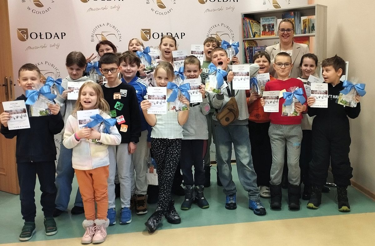 Na zakończenie zimowych spotkań wszystkie dzieci otrzymały drobne upominki, które wręczyła Agnieszka Dziobkowska Dyrektor Biblioteki Publicznej w Gołdapi. Dziękujemy za wspólnie spędzony czas, wspaniałą atmosferę i ogromne zaangażowanie naszymi działaniami podczas ferie i zimowych poranków!
