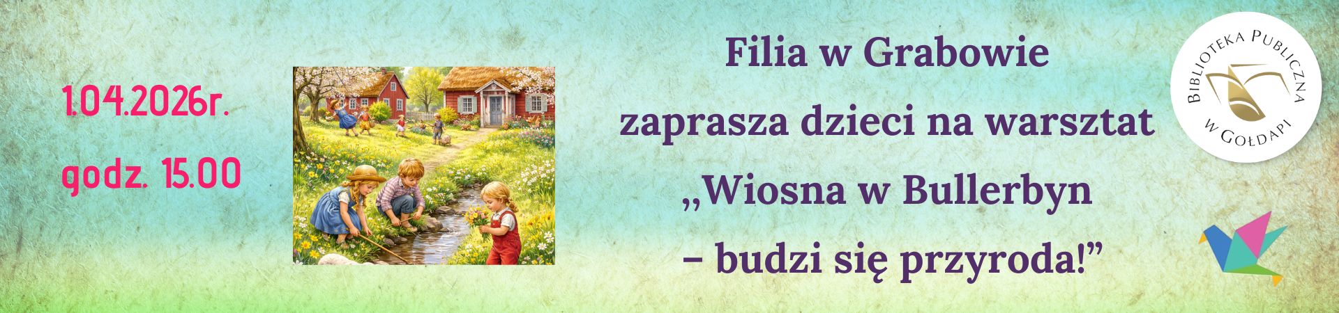 Filia w Grabowie zaprasza wszystkie dzieci na warsztat pt. Wiosna w Bullerbyn-mieszkańcy Bullerbyn budzą się do życia, drzewa kwitną, a w ogrodach...
