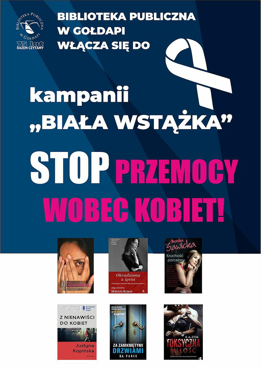 Biblioteka Publiczna w Gołdapi włącza się do Kampanii “Biała Wstążka”, która zrodziła się w Kanadzie w 1991 r. Ma na celu walkę z przemocą wobec kobiet oraz wspieranie działań na rzecz jej przeciwdziałania. Jest też protestem przeciwko dyskryminacji wynikających z uwarunkowań historycznych, środowiskowych i społecznych.