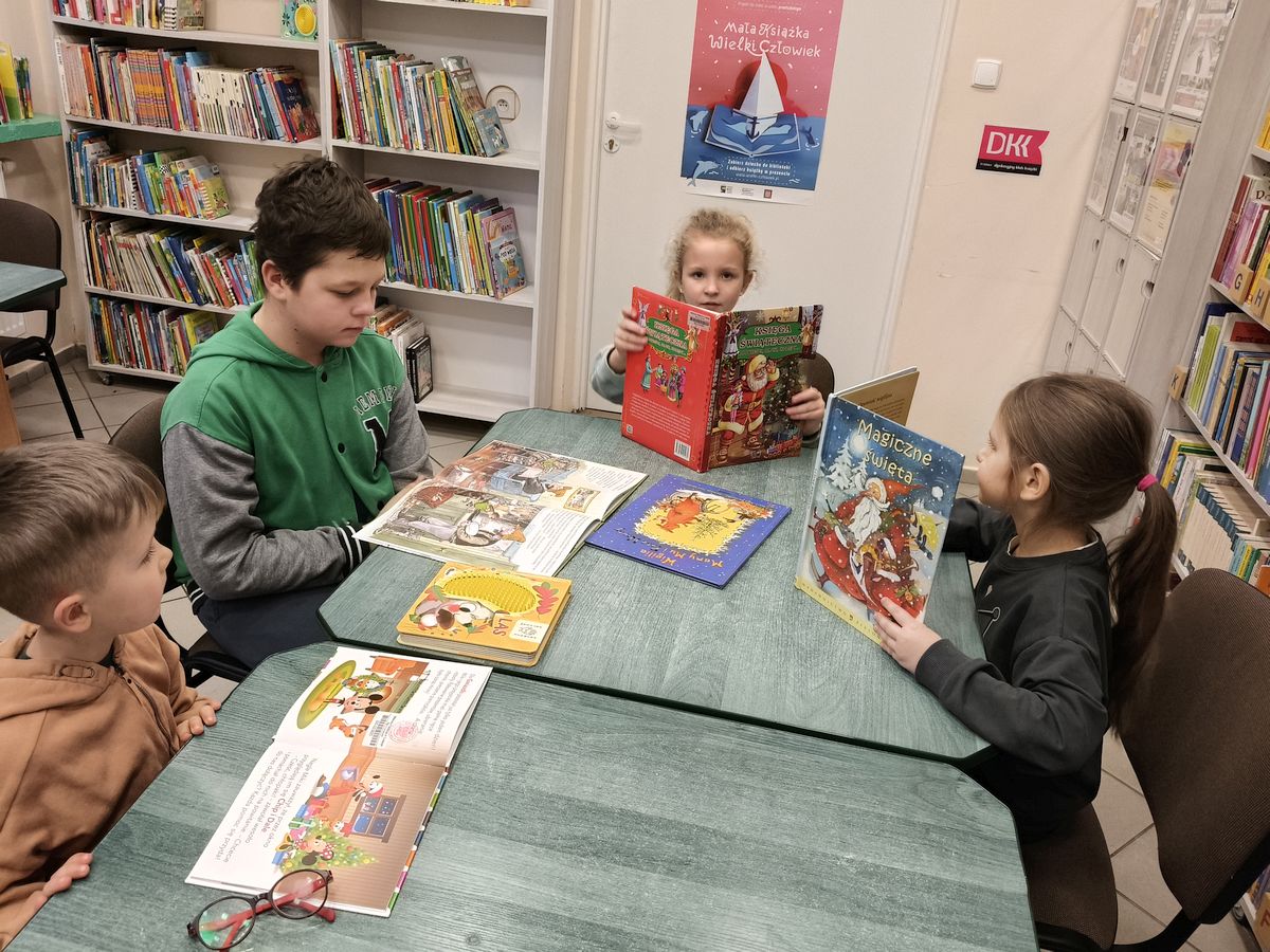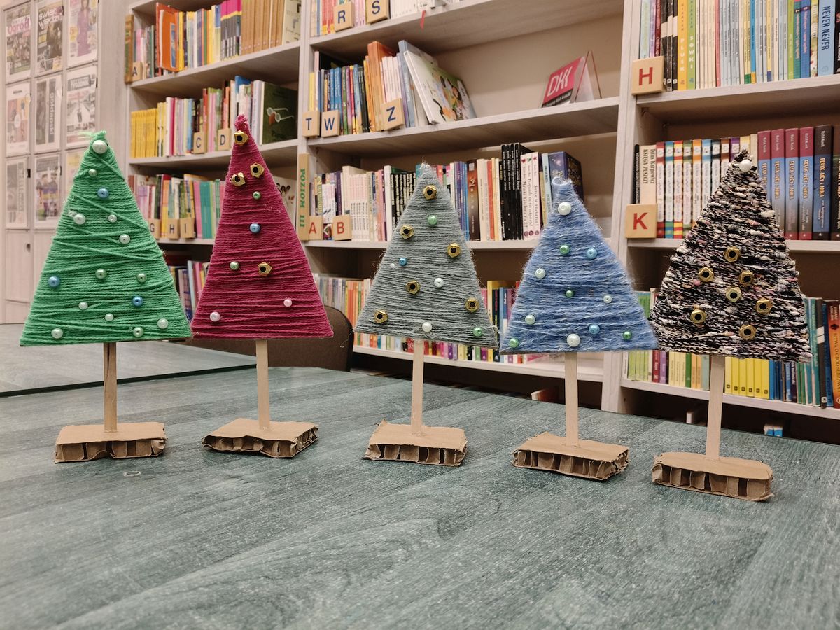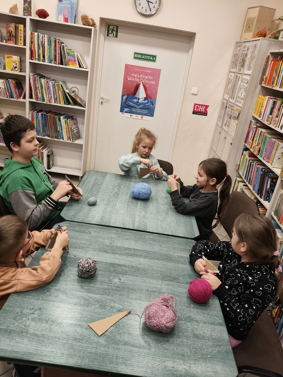 18 grudnia 2025 r. w Filii w Grabowie odbył się świąteczny warsztat „Papierowe Święta – od historii do rękodzieła”, podczas którego uczestnicy poznali tradycje związane z papierowymi ozdobami bożonarodzeniowymi oraz ich znaczenie w dawnych domach. Spotkanie rozpoczęło się wspólnym czytaniem świątecznej opowieści, wprowadzając uczestników w bożonarodzeniowy nastrój. Następnie odbyła się część plastyczna – dzieci wykonywały choinki z włóczki i kolorowych koralików, a także choinki z makulatury, ucząc się kreatywnego wykorzystania materiałów z recyklingu.