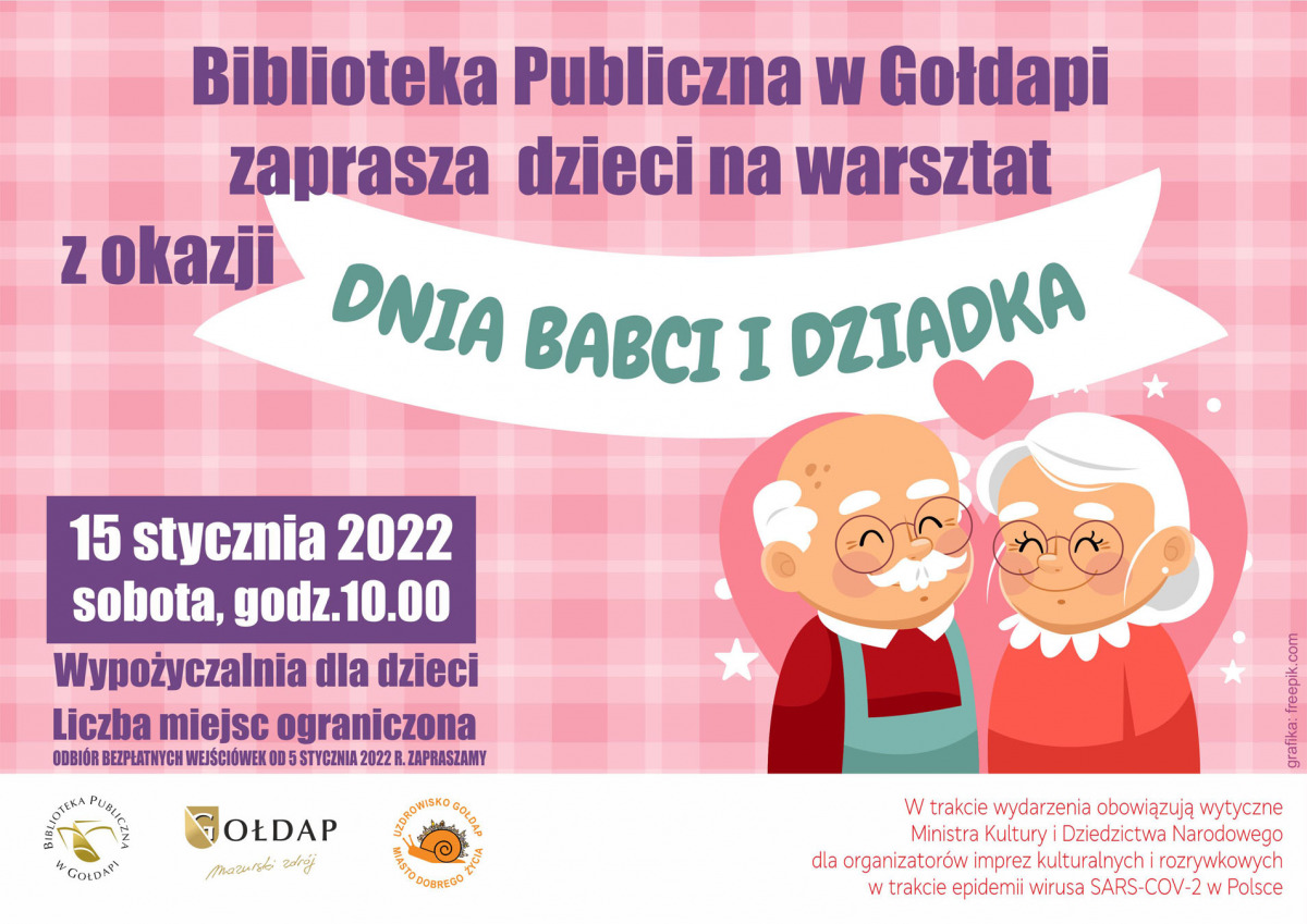 Biblioteka Publiczna w Gołdapi zaprasza dzieci na warsztat z okazji „Dnia babci i dziadka” , który odbędzie się 15 stycznia 2022r o godzinie 10:00 w wypożyczalni dla dzieci.