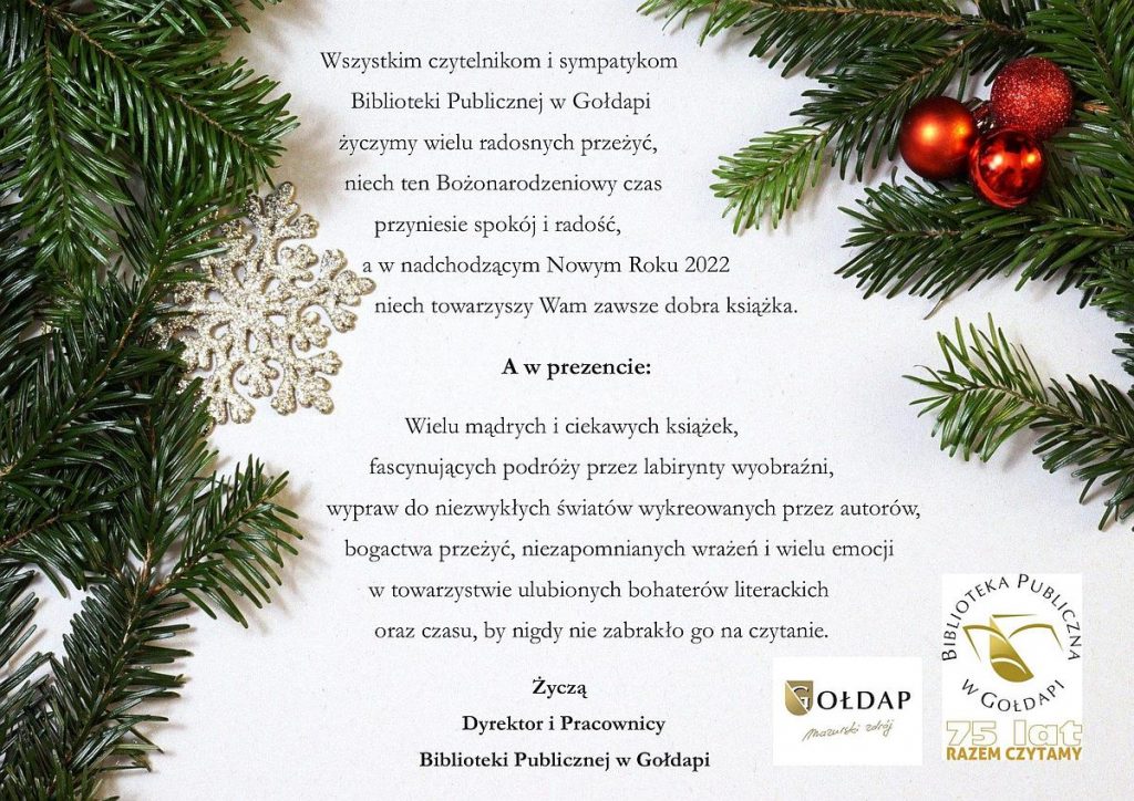 Autor:info 21 grudnia 2021 Czytelnia,Dział gromadzenia i opracowania zbiorów,Dział zbiorów specjalnych,Filia w Grabowie,Izba Regionalna,Pracownia komputerowa,Wypożyczalnia dla dorosłych,Wypożyczalnia dla dzieci