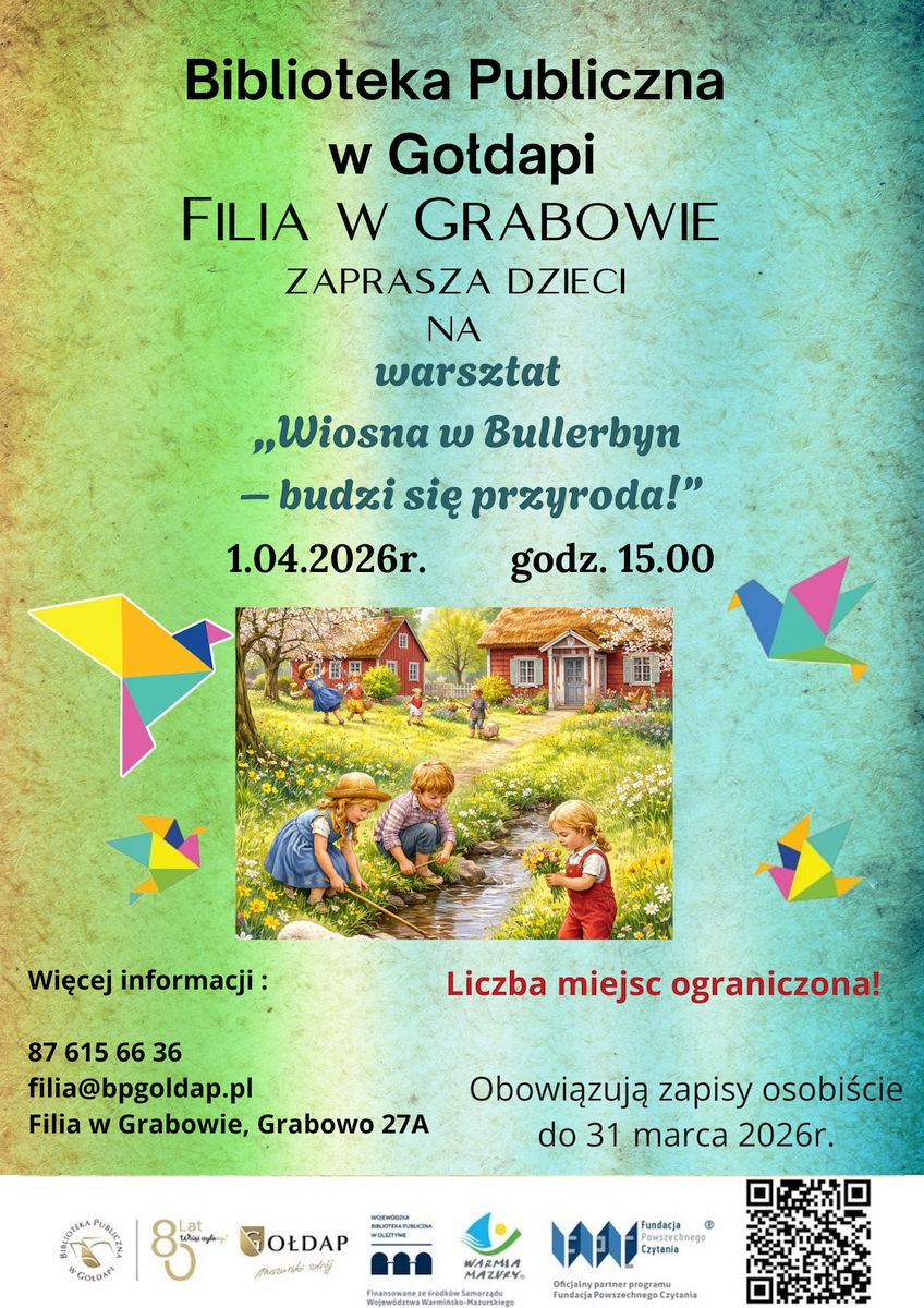Filia w Grabowie zaprasza wszystkie dzieci na warsztat pt. Wiosna w Bullerbyn-mieszkańcy Bullerbyn budzą się do życia, drzewa kwitną, a w ogrodach roi się od przygód i zabaw-a my zapraszamy wszystkie dzieci do wspólnego powitania wiosny w bibliotece!