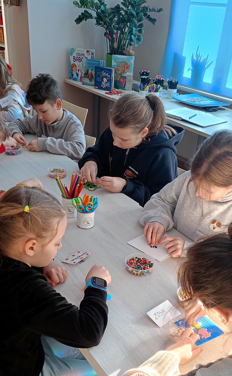 Czas upływał również na wspólnej zabawie przy grach planszowych, sprzyjających integracji, współpracy i zdrowej rywalizacji. Zajęcia dostarczyły dzieciom wielu pozytywnych emocji i były doskonałym przykładem połączenia literatury, kreatywności oraz nowoczesnych technologii w bibliotecznej przestrzeni.