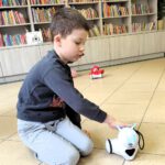 Trzeci dzień „Zimowych poranków” rozpoczęliśmy wspólnym czytaniem z misiem Bajeczką, które wprowadziło dzieci w radosny i spokojny nastrój. Następnie uczestnicy bawili się z robotami Photonami, rozwijając umiejętności twórcze, logiczne myślenie oraz współpracę, a także tworzyli własne kolorowanki-turlanki, które dostarczyły im dużo śmiechu i dobrej zabawy.