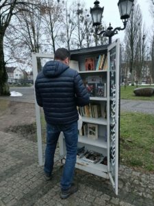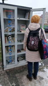 W grudniu szafa nabiera świątecznego charakteru, ozdobiona delikatnymi dekoracjami, które dodają jej ciepła i uroku. Podejdź, otwórz drzwiczki, weź książkę lub zostaw swoją. Dzielmy się literaturą i twórzmy wspólną, parkową bibliotekę pod gołym niebem.