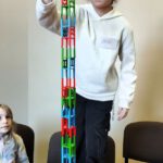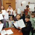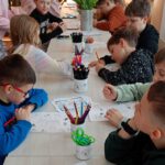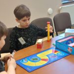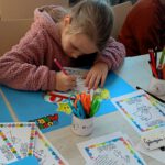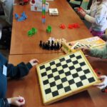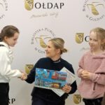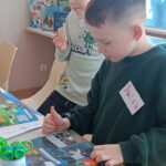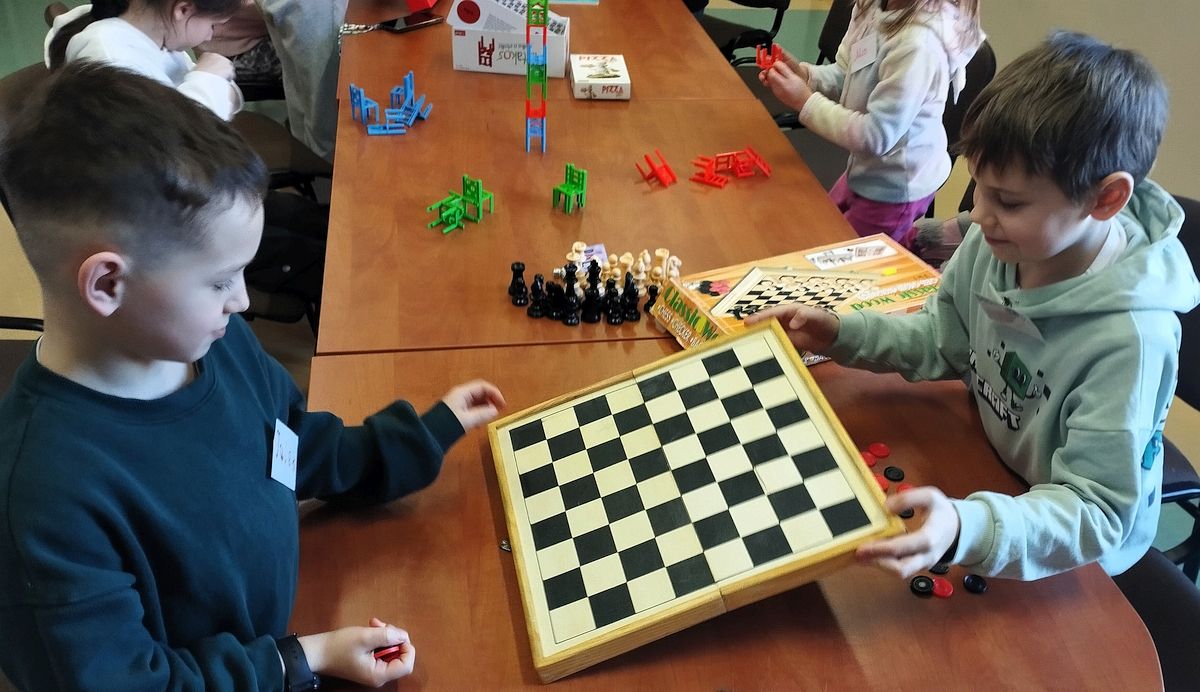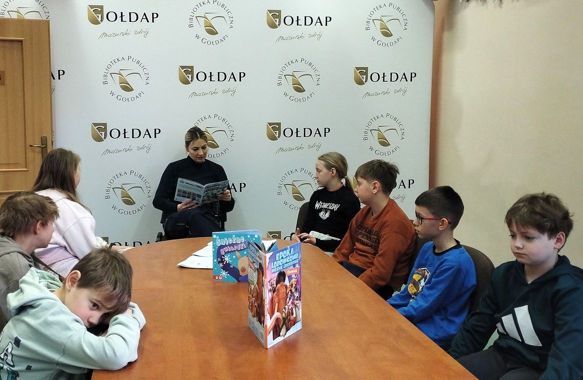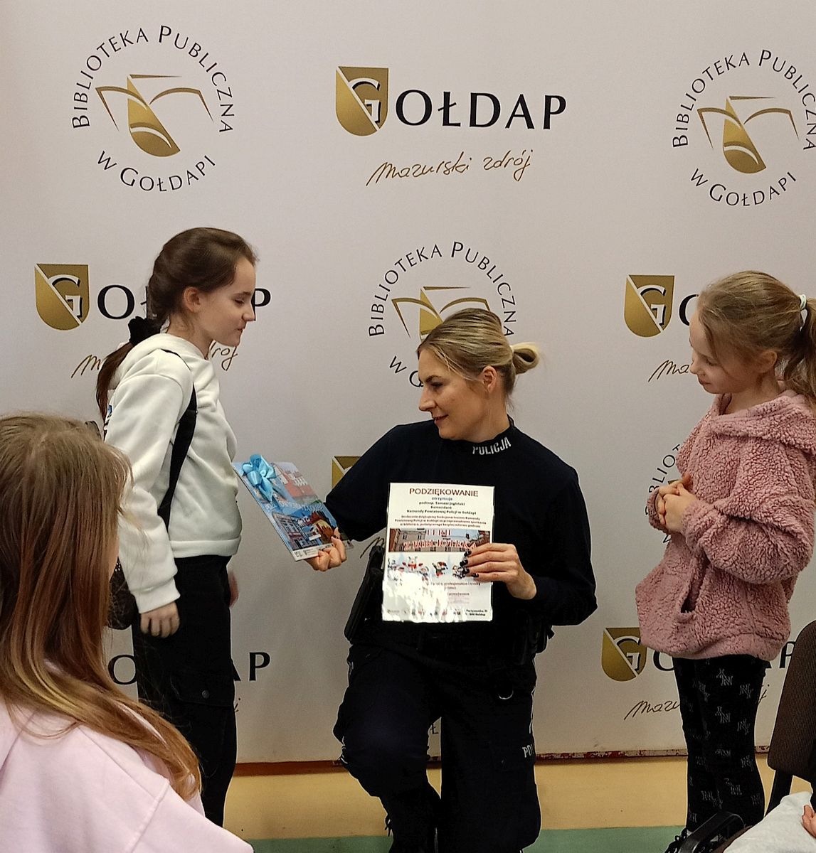 Równocześnie rozpoczęliśmy feryjne zajęcia w bibliotece. Naszym gościem była funkcjonariuszka Komendy Powiatowej Policji w Gołdapi, która rozmawiała z dziećmi o bezpiecznym spędzaniu ferii zimowych. Podczas spotkania dzieci wysłuchały fragmentu książeczki „Zimowe zabawy”, który zachęcał do odpowiedzialnego korzystania z zimowych atrakcji. W ramach podziękowania najmłodsi wręczyli laurkę, a w zamian otrzymali kolorowanki związane z zasadami bezpieczeństwa. Po części edukacyjnej dzieci z entuzjazmem tworzyły laurki „Super Dziadzio” i „Super Babcia”, a następnie wspólnie bawiły się przy grach planszowych oraz budowie konstrukcji z klocków LEGO.